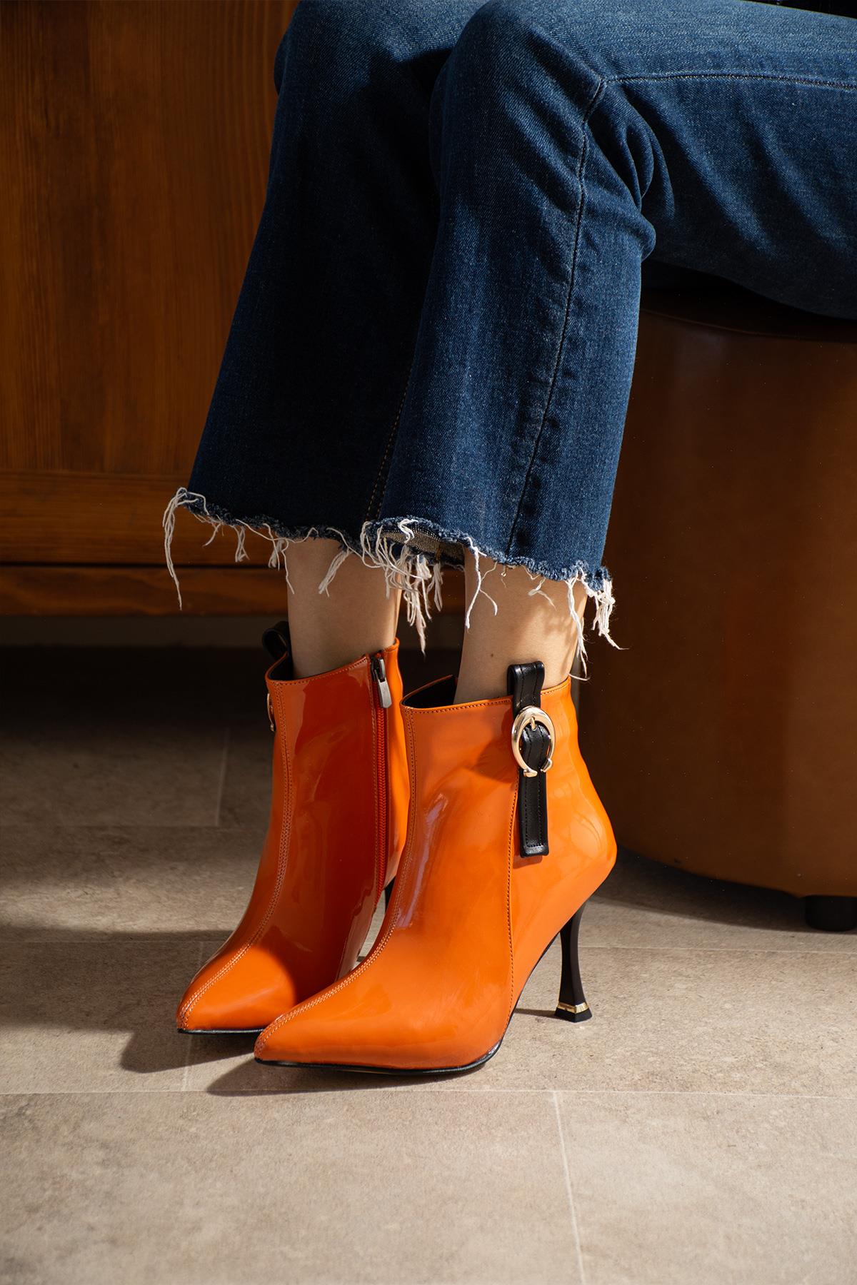 HOLLY TURUNCU RUGAN 7 CM TOPUKLU TOKA DETAYLI BOT BOTTİE
