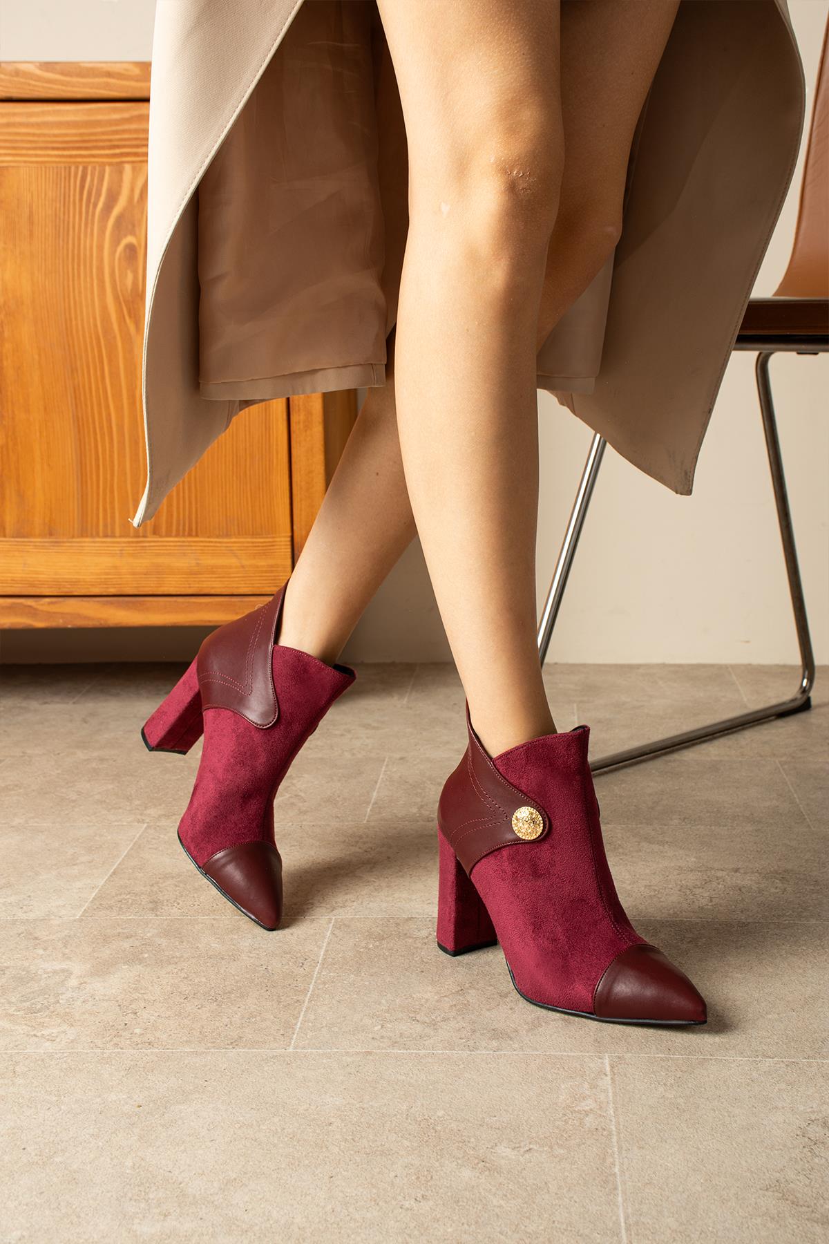 LAYLA BORDO SÜET 7 CM TOPUKLU DÜĞME DETAYLI FERMUARLI BOT BOTTİE