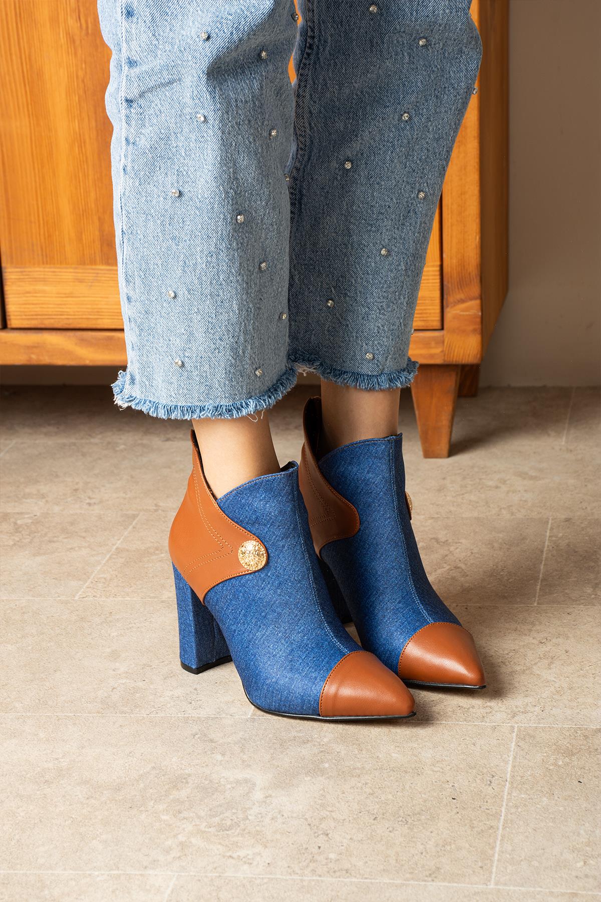 LAYLA KOT TABA SÜET 7 CM TOPUKLU DÜĞME DETAYLI FERMUARLI BOT BOTTİE
