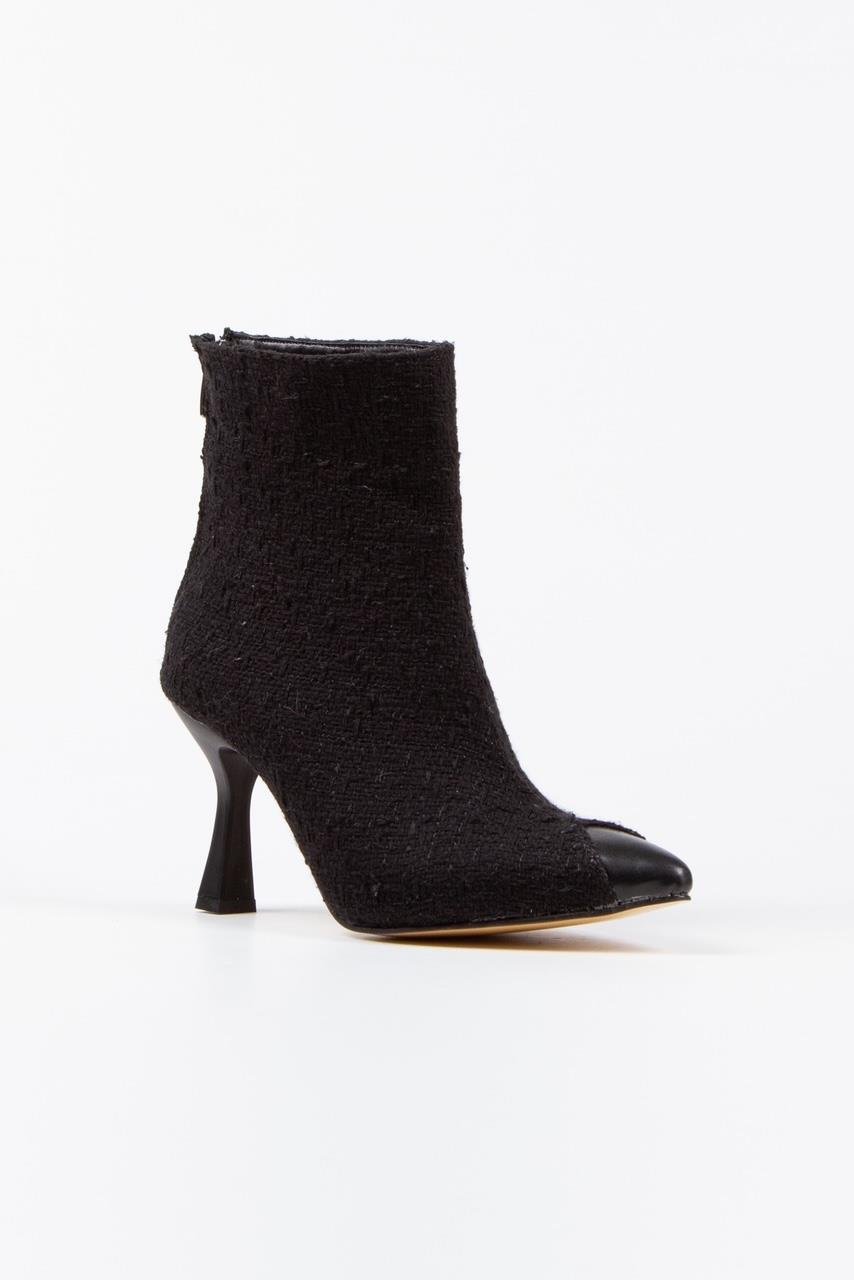 Leo Siyah Önü Siyah Cilt Arka Fermuar Detaylı Kadın Bot Bottie