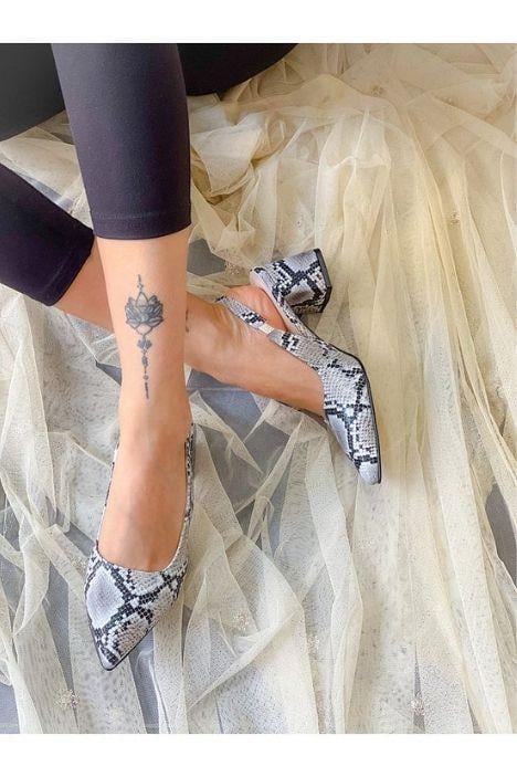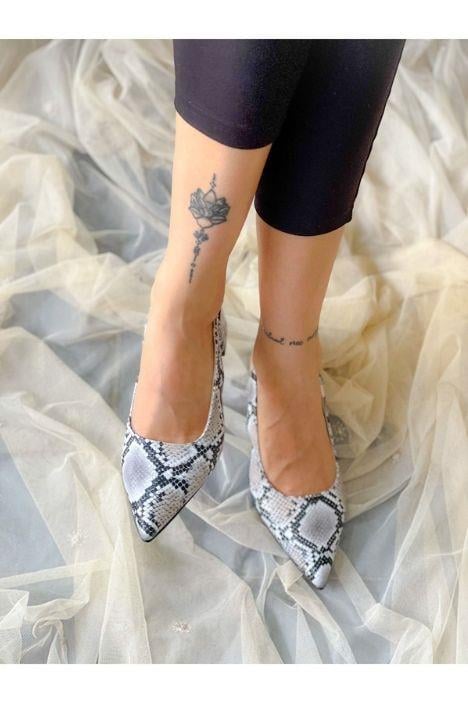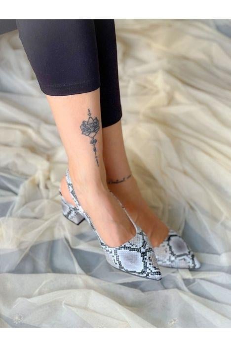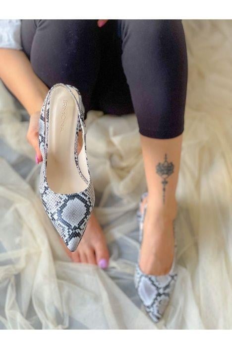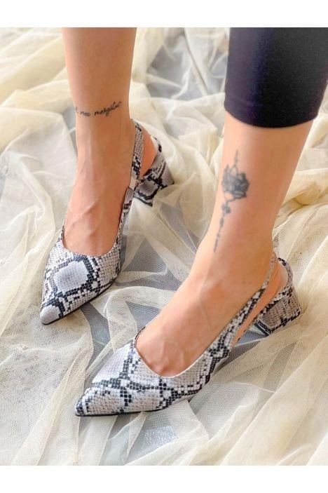 MARİA GRİ YILAN DERİSİ TOPUKLU SANDALET AYAKKABI