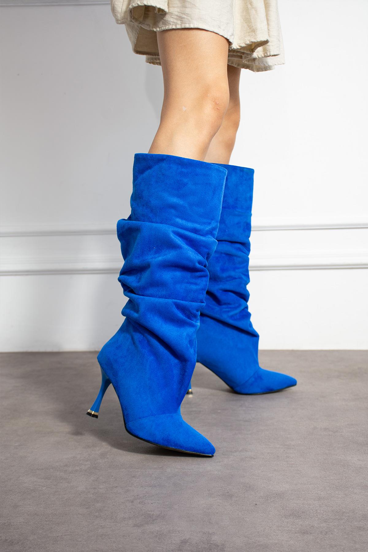 VENEDİK SAKS DANA SÜET EKSTRA GENİŞ KONÇ KÖRÜKLÜ İNCE ÖKÇE ÇİZME